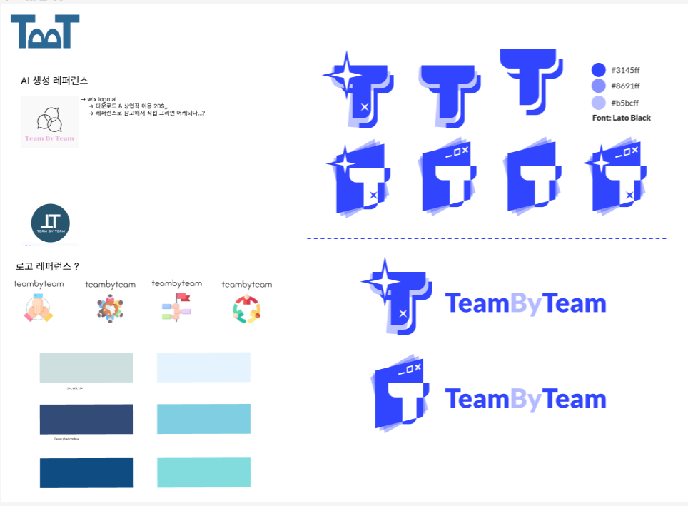 Team By Team의 T와 여러 플레이스를 형상화하여 사각형들을 겹쳐두었다. 지금봐도 너무 이쁘고 맘에든다. 열심히 개발해야지